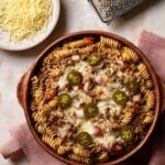 This one-pot cheeseburger pasta combines all the comforting flavors of a classic cheeseburger into a creamy, cheesy pasta dish that’s quick and easy to make. Ground beef, tomatoes, and fusilli pasta are cooked together with savory Worcestershire sauce and a rich cheddar cheese sauce, topped with tangy pickles and spicy jalapeños for the perfect homemade comfort meal.