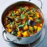 A comforting and flavorful one-pot mushroom and potato curry made with tender potatoes, aubergine, and button mushrooms simmered in a fragrant curry paste and creamy reduced-fat coconut milk, perfect for a quick vegan dinner.