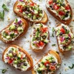 This open Greek-style salad sandwich combines creamy feta and tangy yogurt with fresh vegetables for a refreshing and satisfying meal. Perfect for a light lunch or a tasty snack, these sandwiches bring bright Mediterranean flavors to your table with minimal effort.
