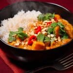 Keywords: Peanut butter curry, butternut squash recipe, vegan curry, coconut milk curry, Asian inspired vegan dish, easy curry recipe