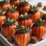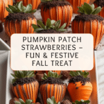These Pumpkin Patch Strawberries are a fun and festive treat perfect for fall celebrations. Juicy strawberries are dipped in vibrant orange chocolate and optionally coated with a crumbly “dirt” base for a playful look. They’re simple to make and sure to impress!