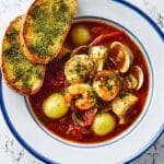 Keywords: fish stew, quick seafood stew, tomato fish stew, garlic butter, mixed seafood recipe, easy seafood dinner