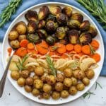 - Add Other Vegetables to Pan: Place the white potatoes, Brussels sprouts, carrots, and onion onto the prepared sheet pan in an even layer.