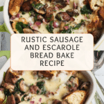This Rustic Bake with Escarole is a hearty and comforting dish, perfect for using up rustic bread and fresh greens. Packed with spicy Italian sausage, wild mushrooms, and gooey gouda, it’s a flavorful meal that comes together easily and bakes into a deliciously savory casserole.