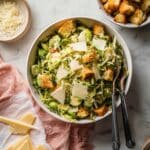 This Shaved Brussels Sprouts Salad is a fresh, crunchy twist on a classic favorite. Tossed with creamy homemade Caesar dressing and topped with crisp croutons and shaved Parmigiano Reggiano, it’s both flavorful and satisfying for any meal.