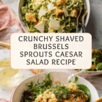 Keywords: Brussels sprouts salad, shaved Brussels sprouts, Caesar salad, homemade Caesar dressing, crunchy salad, croutons, healthy salad