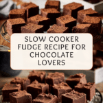 Keywords: slow cooker fudge, easy fudge recipe, chocolate fudge, no bake fudge, homemade fudge, chocolate dessert
