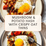 This smoky mushroom and potato hash is a comforting and hearty dish, perfect for any time of day. Paired with crispy oaty thins and topped with runny eggs, it’s a flavorful and nourishing meal that’s easy to prepare at home.