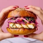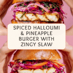 This spiced halloumi and pineapple burger is a vibrant twist on the classic burger, combining salty grilled cheese with sweet, caramelized pineapple and a fresh, zingy slaw. Perfect for summer barbecues or a flavorful vegetarian meal any time of year.