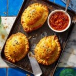 These spiced spinach and potato pasty pies are a deliciously flavorful snack or light meal. Packed with aromatic spices and tender vegetables wrapped in buttery shortcrust pastry, they’re perfect served warm with mango chutney or lime pickle.
