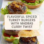 Keywords: turkey burger, spiced turkey burgers, Madras curry powder, healthy burger recipe, Indian inspired burger, quick turkey dinner