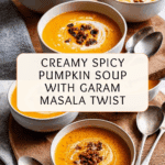 Keywords: spicy pumpkin soup, roasted pumpkin soup, easy autumn soup, vegetarian Indian soup, creamy pumpkin soup, garam masala soup, cozy fall recipes