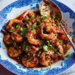 This Spicy Sichuan-style prawns recipe features succulent prawns stir-fried with aromatic ginger, garlic, and spring onions in a bold, flavorful sauce made from chilli bean paste, tomato purée, and a perfect balance of vinegar and sugar. Finished with sesame oil and fresh coriander, this dish delivers a vibrant, spicy kick characteristic of Sichuan cuisine, perfect for a quick and delicious weeknight meal.