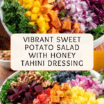 This Sweet Potato Salad is a vibrant and nutritious dish that combines hearty kale, tender roasted sweet potatoes, and a colorful mix of fresh vegetables and berries. The creamy honey tahini dressing ties all the flavors together, making it perfect for a healthy lunch or a side at dinner.