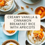 A comforting and wholesome vanilla and cinnamon breakfast rice featuring wholemeal basmati rice simmered with aromatic spices, served with tender dried apricots, creamy yogurt, and crunchy walnuts. This recipe balances warm, fragrant flavors with a nutritious start to your day.