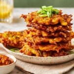 - Step 6: Remove the fritters and drain on kitchen paper. Sprinkle with a little salt while still warm and serve alongside lime pickle, mango chutney, and raita.
