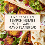 Delicious and easy-to-make vegan kebabs featuring crispy smoked paprika marinated tempeh, fresh salad leaves, and tangy pickled red cabbage, all wrapped in warm flatbreads with a garlicky vegan mayonnaise. Perfect for a flavorful plant-based meal.