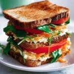 This vegetarian club sandwich is a fresh and healthy twist on a classic favorite. Packed with crunchy watercress, grated carrot, and juicy tomatoes, it offers vibrant flavors layered between toasted granary bread. It’s perfect for a light lunch or an easy snack.