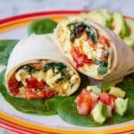 Keywords: veggie breakfast burrito, scrambled eggs, spinach burrito, Mexican breakfast, healthy breakfast, easy breakfast burrito