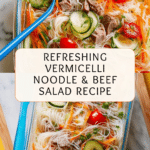 A refreshing and flavorful vermicelli noodle and beef salad featuring tender leftover beef, crisp vegetables, and a tangy, sweet, and savory dressing. This easy-to-make salad is perfect for light lunches or as a vibrant side dish and can be enjoyed chilled to enhance its fresh flavors.