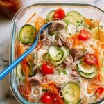 A refreshing and flavorful vermicelli noodle and beef salad featuring tender leftover beef, crisp vegetables, and a tangy, sweet, and savory dressing. This easy-to-make salad is perfect for light lunches or as a vibrant side dish and can be enjoyed chilled to enhance its fresh flavors.