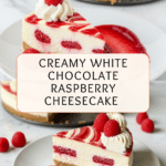 Keywords: white chocolate cheesecake, raspberry cheesecake, baked cheesecake, creamy cheesecake, dessert recipe